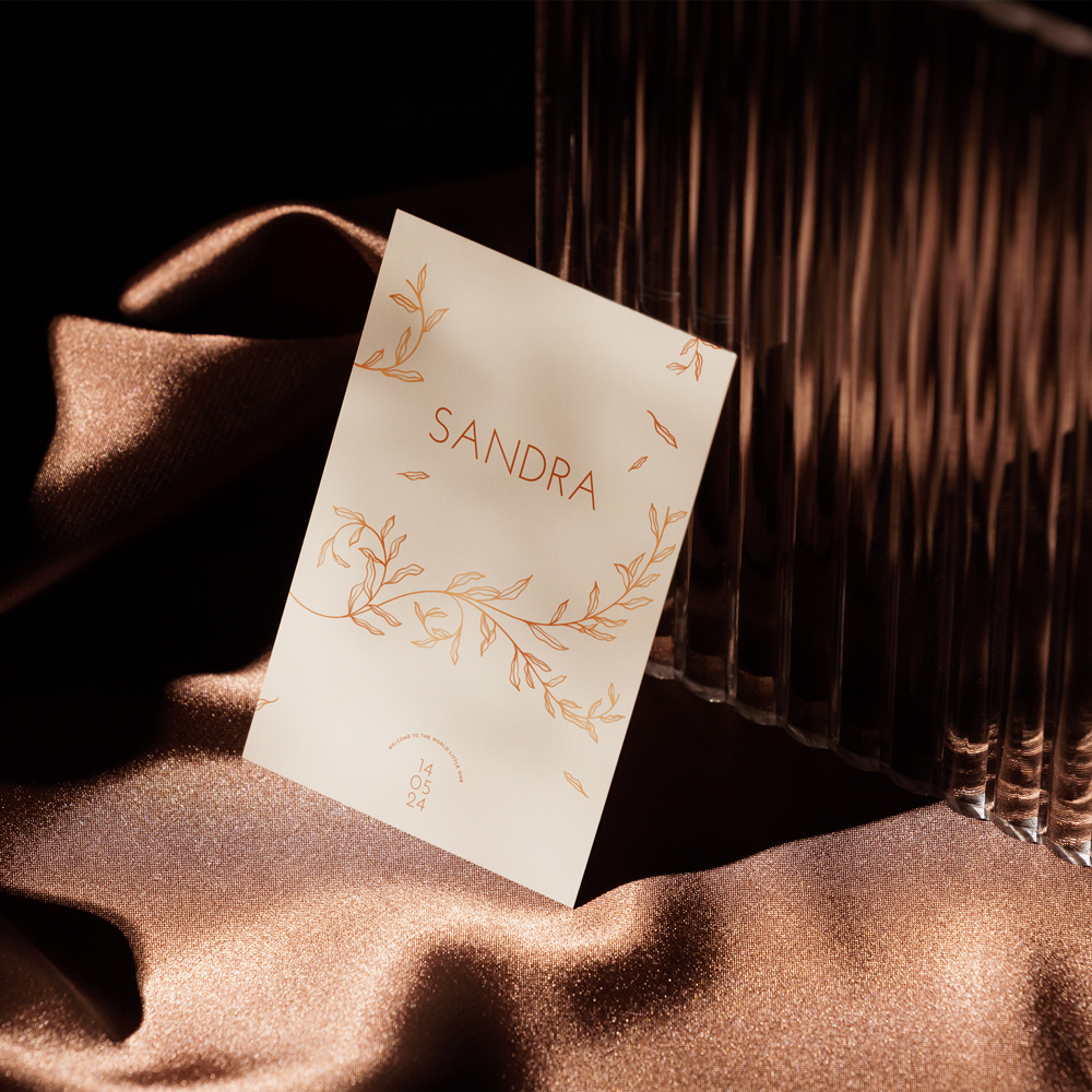 • De papiersoort linnen geeft het ontwerp een luxe uitstraling.