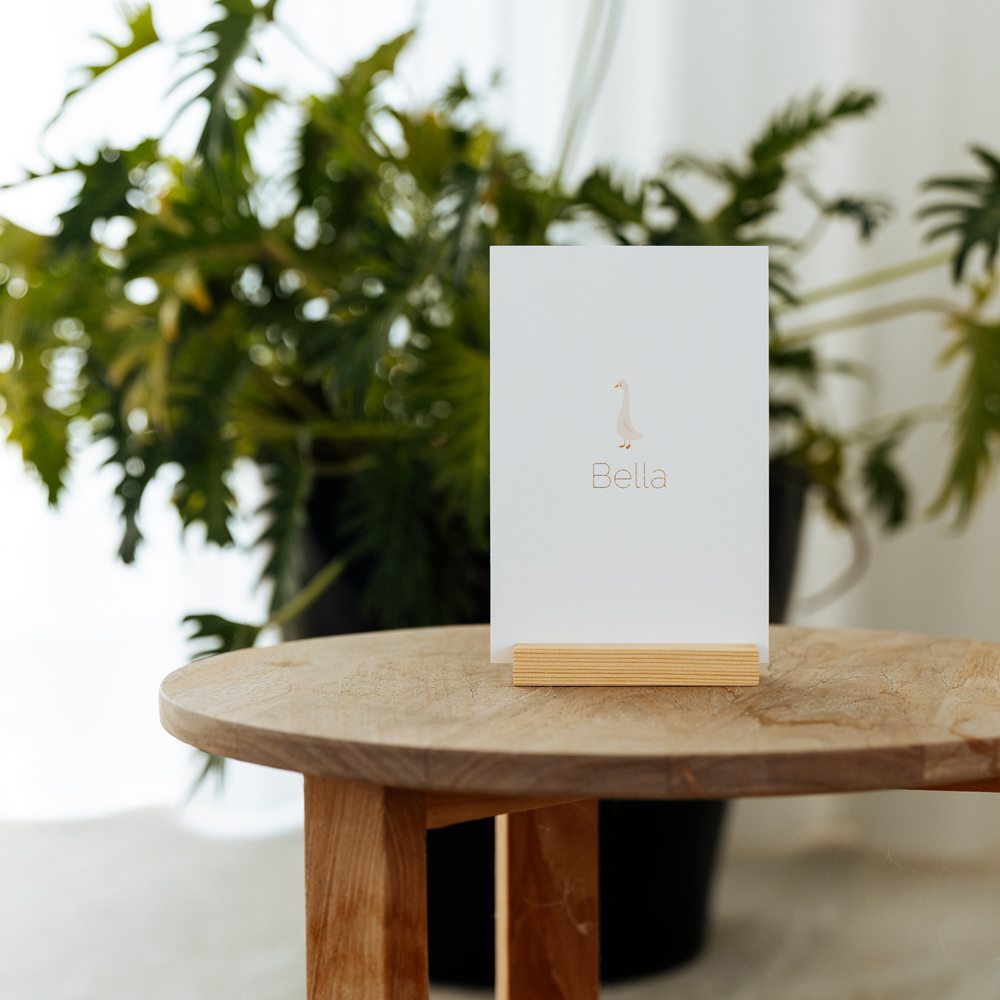 Een prachtig geboortekaartje met speelse gans. Liever een andere kleur? Dit kun je zelf aanpassen in de editor.