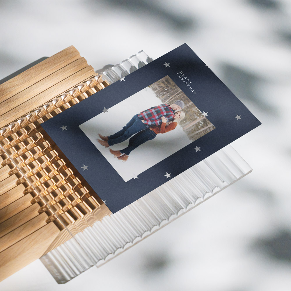 Een prachtige kerstkaart met glinsterende sterretjes!