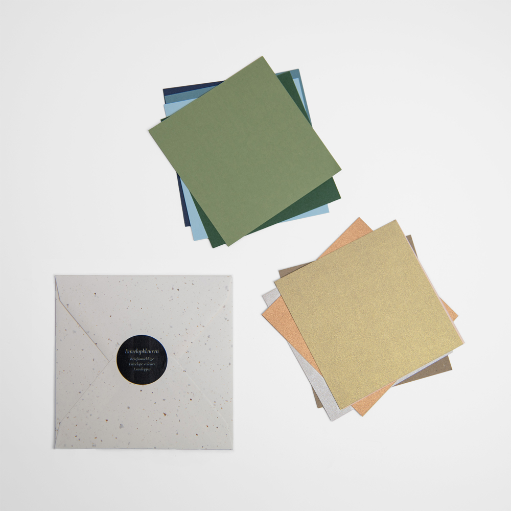 Twijfel je over de envelopkleur? Met deze stalenset heb je een overzicht van 30+ kleuren, zodat je eenvoudig de perfecte match kunt vinden bij jouw kaart. Van hippe kleuren tot metallic – deze set helpt je bij het maken van de keuze.