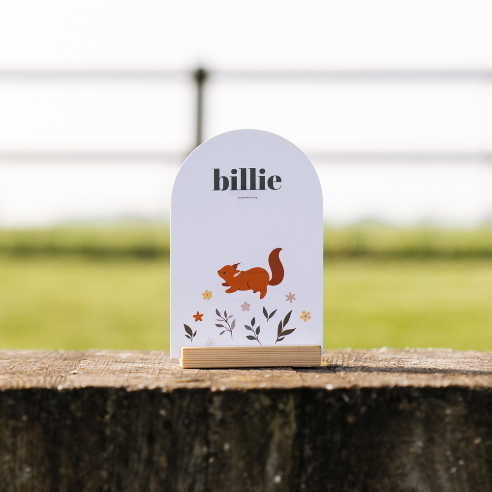 Wat een stijlvol geboortekaartje! De speciale vorm maakt de kaart extra stijlvol. De eekhoorn lekker lief!