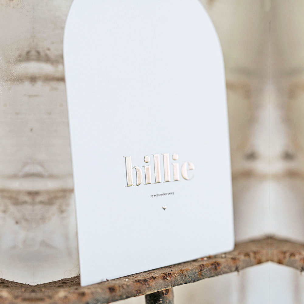 Wauw wat een geboortekaartje! Less is more! De speciale vorm maakt de kaart extra stijlvol.