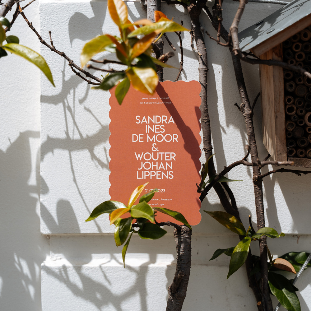 De "Wavy" trouwkaart is een unieke en toch stoere keuze voor jullie speciale dag. Met zijn zachte uitstraling en luxe stansvorm biedt deze kaart een onderscheidend ontwerp dat perfect past bij jullie bruiloft. De mogelijkheid om de kleur aan te passen in de editor geeft jullie de vrijheid om de kaart volledig naar jullie wensen aan te passen, waardoor het een persoonlijke touch krijgt.