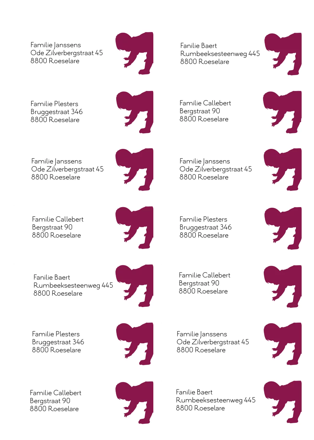 worden gedrukt op glanzend papier, 14 stuks adresstickers 97x34mm met afgeronde hoek op vel,